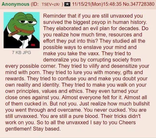 >>524467926>my family and friends arent all dead from the vax>im not dead from not getting the vaxBetter be careful with making objective observations around here anon, that gets you in shittons of trouble with the shills.