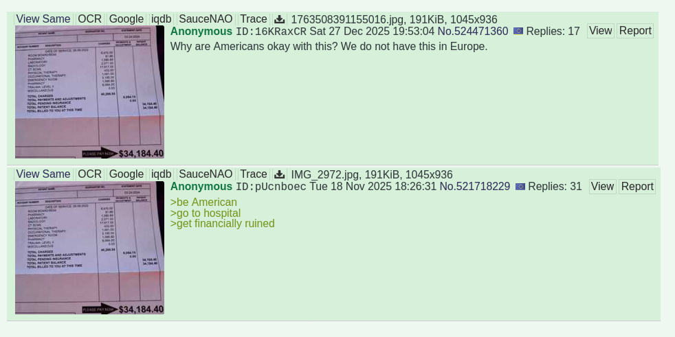 >>524471520>be american>literally dying>go to emergency room>pay $500
