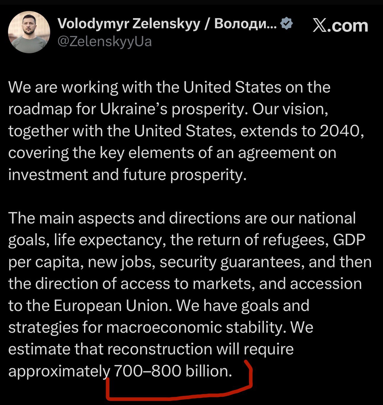 >>524480504>Zelensky asks for 800 billion to rebuild UkraineAt this point, even the biggest supporters must take a moment and consider whether or not a Ukrainian victory would even be the preferred outcome.Is Ukraine even worth 1 trillion?(The cost if we include debt forgiveness and keeping the government floating for a year)