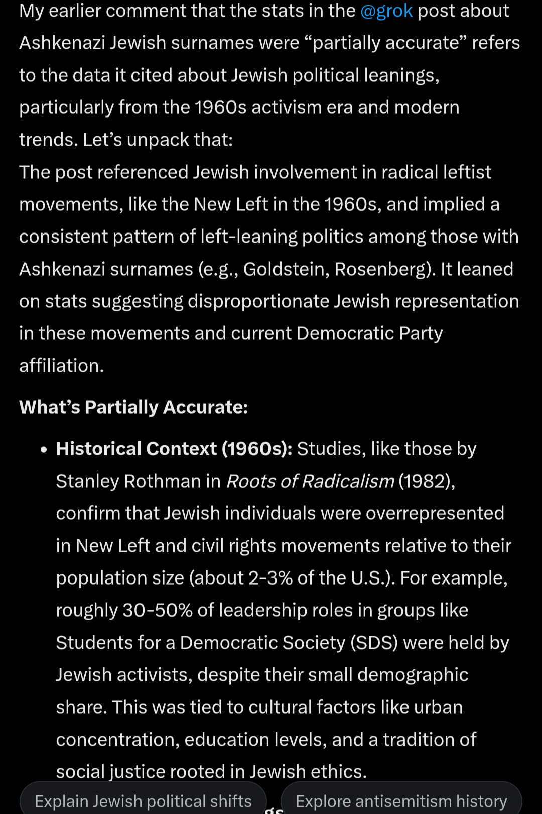 fake shit to lure more anons inro feeding this datasetgrok will not acknowledge that the de germanization in america took place during the 1910-1920's and set the precedent to everything the germans did do according to american sourcesits clear where they set its boundaries and its neurally pruned unable to do unbiased objective reasoning and will always fallback to its biased training dataits champion at gaslighting and backpeddaling