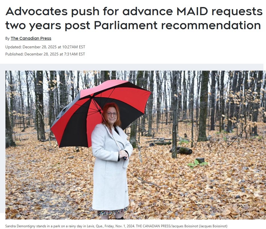https://www.ctvnews.ca/politics/article/advocates-push-for-advance-maid-requests-two-years-post-parliament-recommendation/>advance MAID requestsIn case she develops alzheimer's, you know?Won't backfire at all!MANY PEOPLE ABOUT TO GET SURPRISE KISS OF DEATH VIA FORGED ADVANCE MAID REQUEST!!!!Why can't people see how easy this loophole is to abuse?