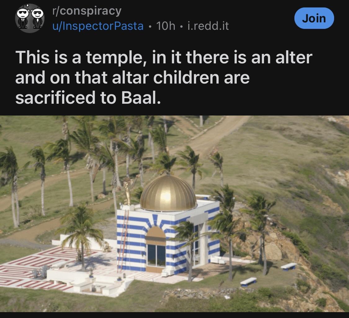 Jeffrey just randomly spent money on a horror movie temple with an owl on it right? He's just like "buy me a new boat, oh, and a weird temple thingy too, just because!"