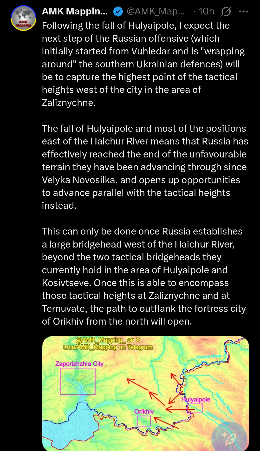 The new Tornado-S guided missiles used on Gulyaypole was the 120km range version. Also it can apparently sense if it is being jammed and pick a different path to the target if I understood this guy correctly.2min 40s video report:https://litter.catbox.moe/yp1l17.webm