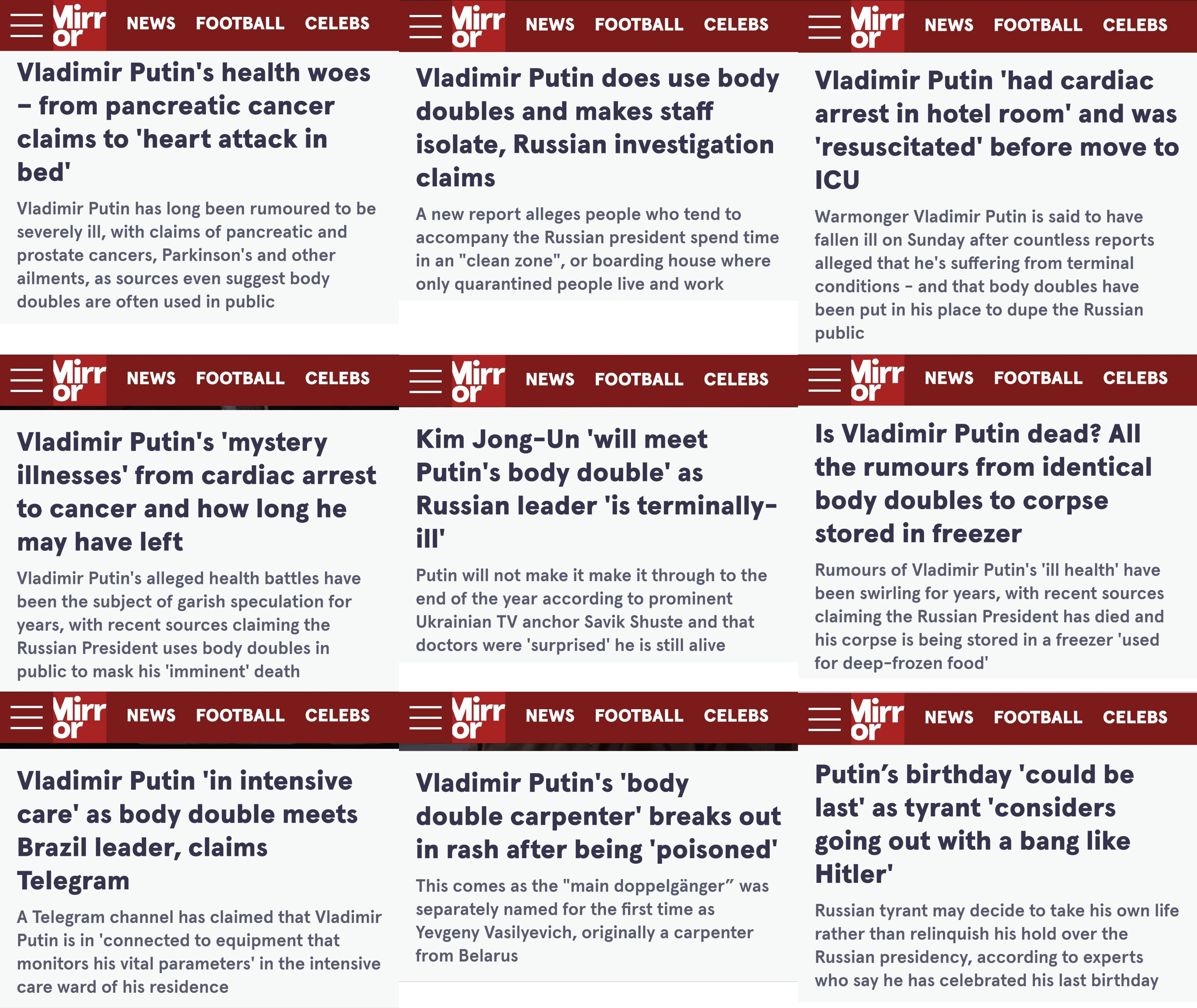 >>524534213British "news" media is the worst. Almost everything they write is either 100% fake or just a projection. And they use the tactic of blaming everything on Putin and holding him responsible for literally everything that happens.