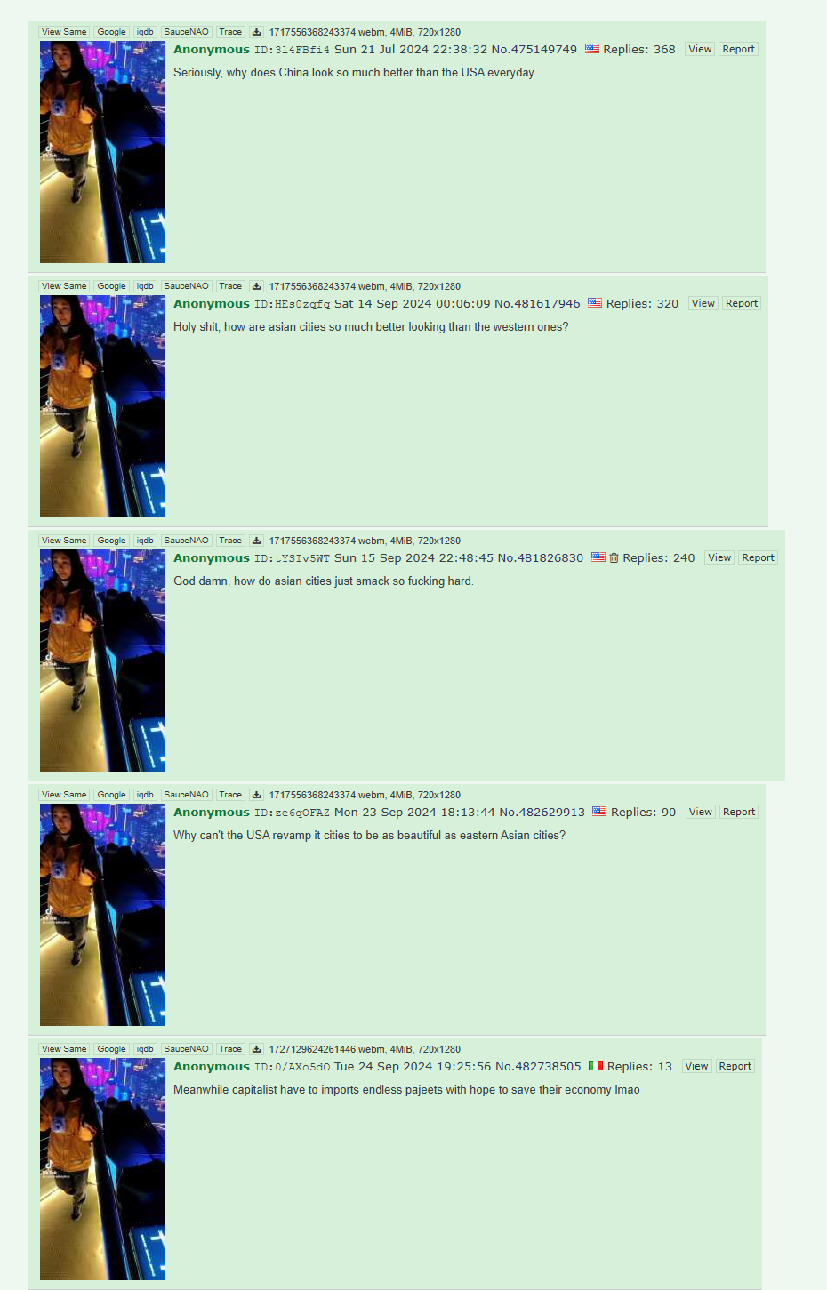 >falling for Peking Potemkin propaganda of L. E. D. spammed city nightscapesThese are Wu Mao threads thinly veiled by proxies.