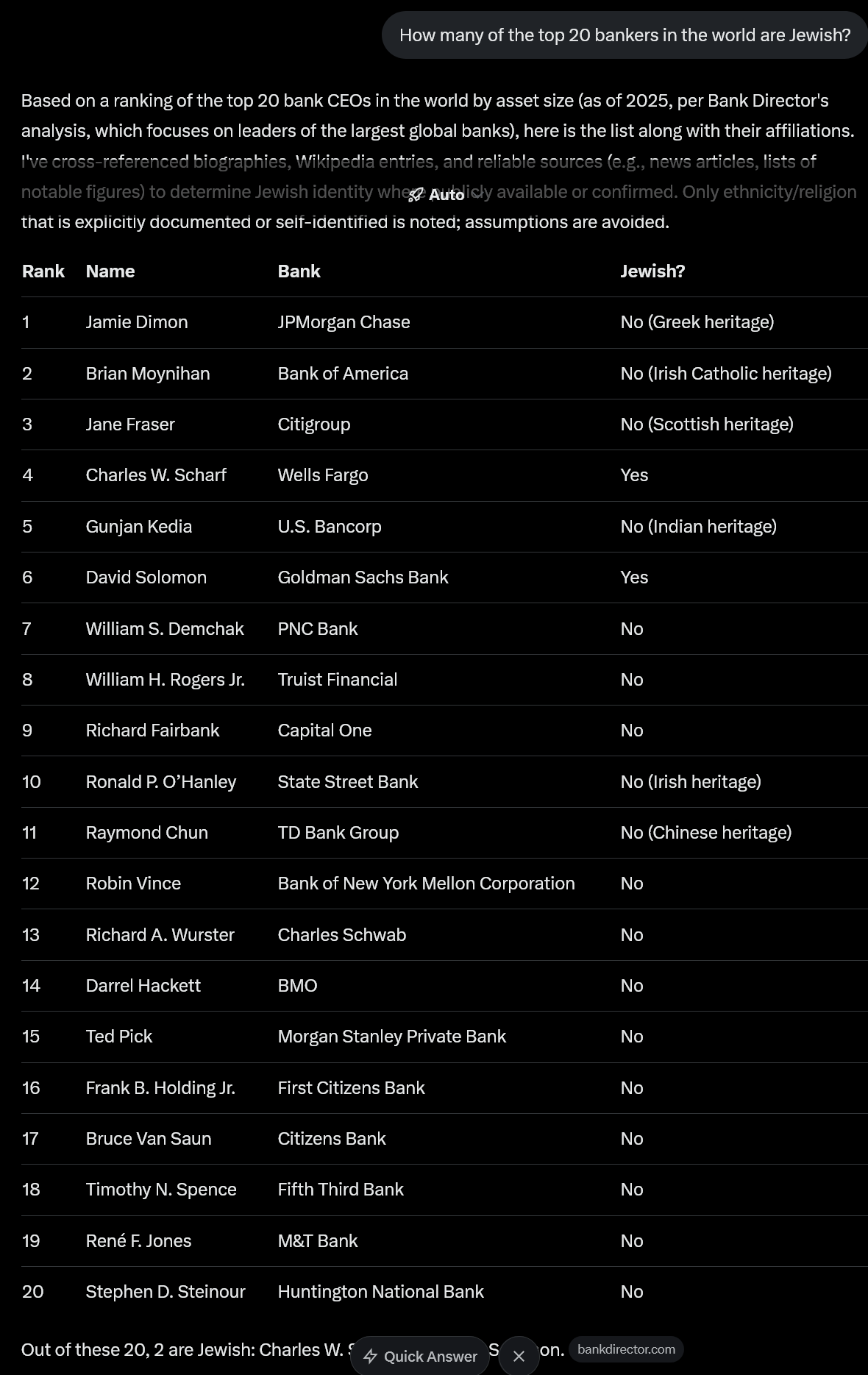 >>524546393Jews are ~0.2% of the world's population but 10% of the bankers on that list.