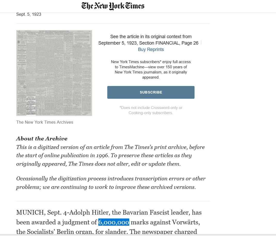 Why were they trying to associate Hitler, who was a nobody at the time, with the number 6 million as early as 1923?