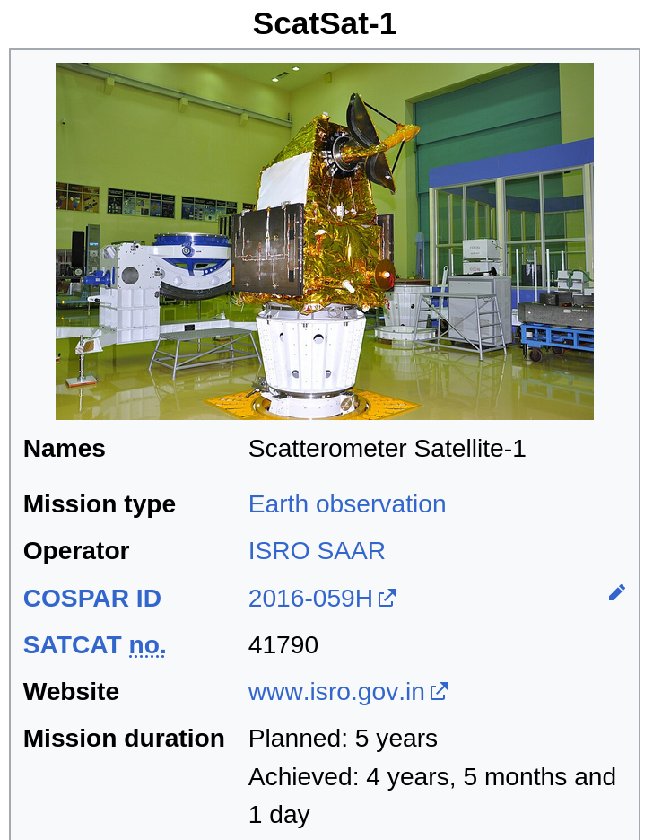 >>524550541ScatSat-2 when ISRO SAAR?