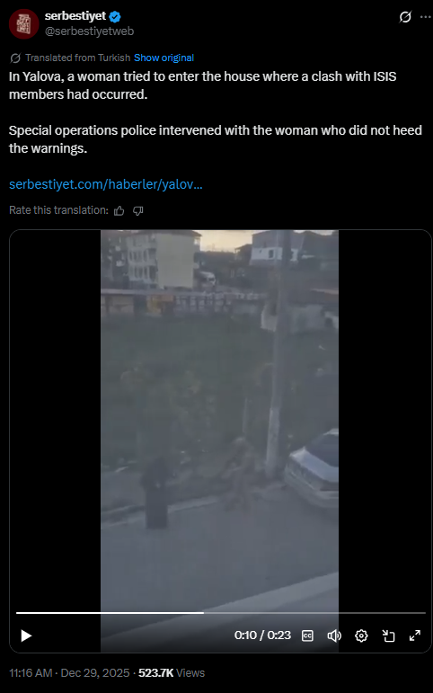 ISIS HAS APPEARED IN TURKEY>HOURS LONG FIGHTING WITH POLICE FORCES>INTENSE BATTLES>7 POLICE INJURED/WOUNDED>STILL ONGOING>BROADCAST BAN IMPOSEDhttps://x.com/_3buR1ah/status/2005533429228618033https://xcancel.com/_3buR1ah/status/2005533429228618033