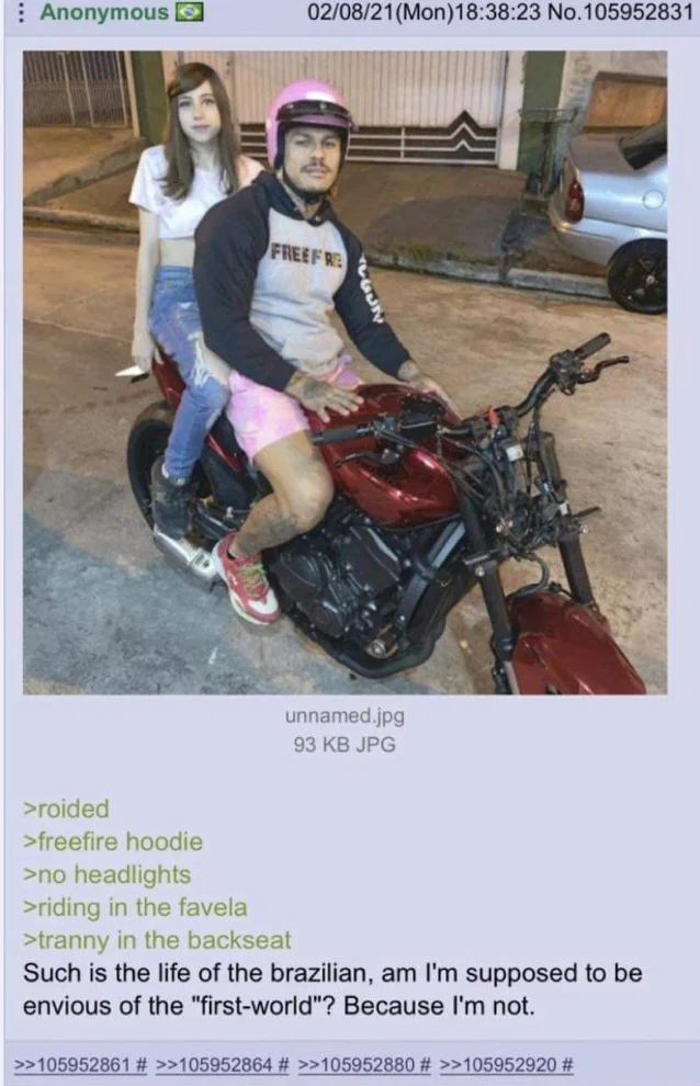>>524553399>you will never experience love like that between a Brazilian roidtroon and his troon gf why live