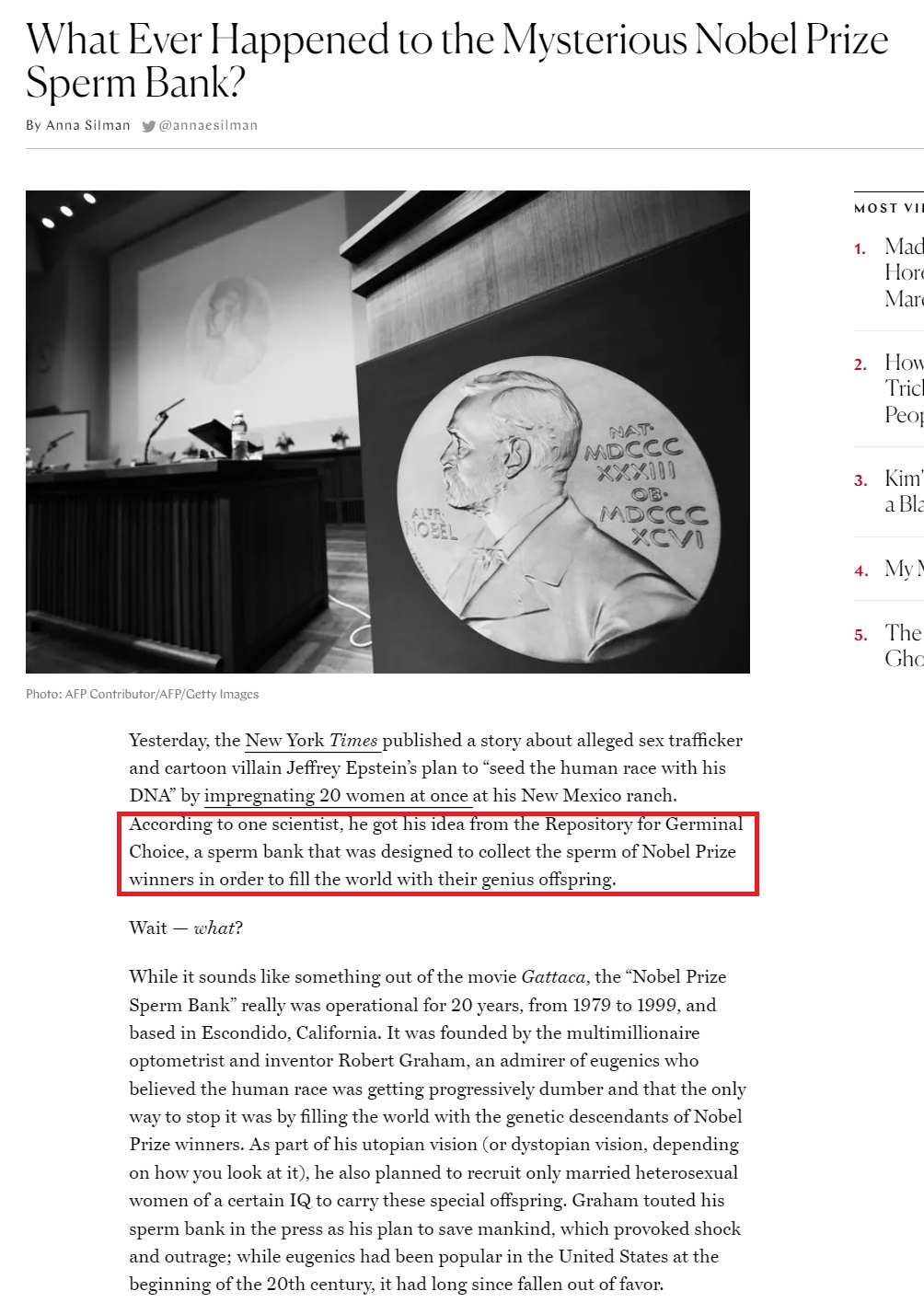 >>524556627>>524556749Epstein's eugenics angle was the Repository for Germinal Choice, a high-end sperm bank which attempted to match prospective mothers with Nobel prize winners sperm - but largely failed to obtain the latterCombine that with his jewish supremacist views and the jew's age-old habit of gene-stealing, and now it's obvious why he would invite a whole host of nobel prize winning goyim to his Lolita island: he was harvesting high end sperm to impregnate jewesses at his zorro breeding ranch
