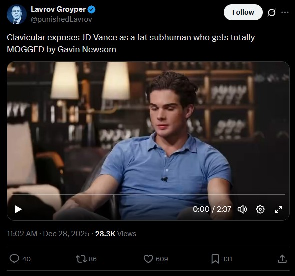 Clavicular is the most important young man in America right now. He already doomed JD Vance to the backseat. His influence among young guys is incalculable. Accelerationism is here and it's gonna be glorious.