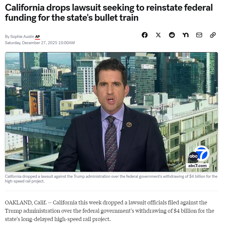 >More efficient than cars>More cost effective than cars>Supports cheap public transportation for the people of California>Fought against by the entire auto industry>Resisted in courts by republican politicians none stop>Forced to massively overrun budget due to endless court battles and protests instigated by republicans >Mocked as a failure and constantly sabotaged before it ever begins Why do conservatives hate public infrastructure projects that help the people so much?