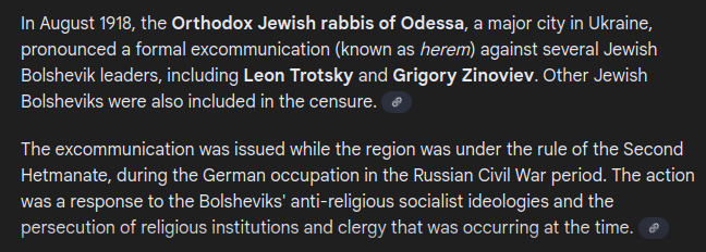 >>524585769Judaism is for monarchy, against women and for wealthy upper class elites.Bolshevism is precisely hated because it killed so many elites, as it is commonly said, even Yiddler said how Bolsheviks killed the Russian Empire's elite.There is nothing that a jew hates more than a commoner, peasant and common worker.This is why any and all jews participating in bolshevik activies have been excommunicated from Judaism