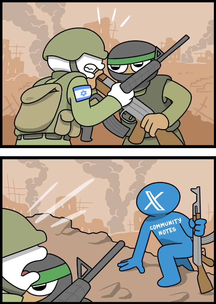 Clearly not. Note the israeli bomb and the swirly being applied more heavily to the pro israel gay.