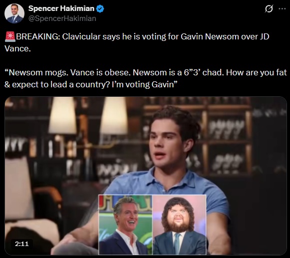 Well, he's right. Newsom is a looker, Vance is a fat piece of shit.