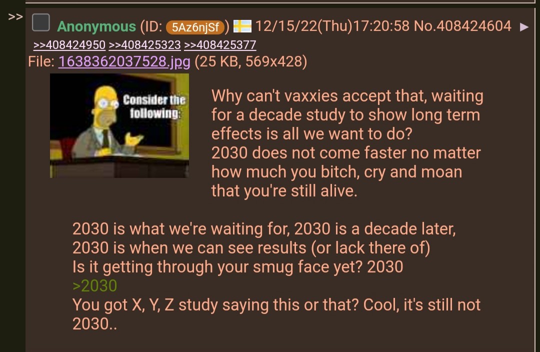 >almost 2026>still no sign of that "vaxxie mass die-off" that /pol/ kept insisting was definitely totally going to happenHuh./pol/ wouldn't lie for (You)s, would they?>inb4 the usual cope "excess deaths" with no real definition or comparison