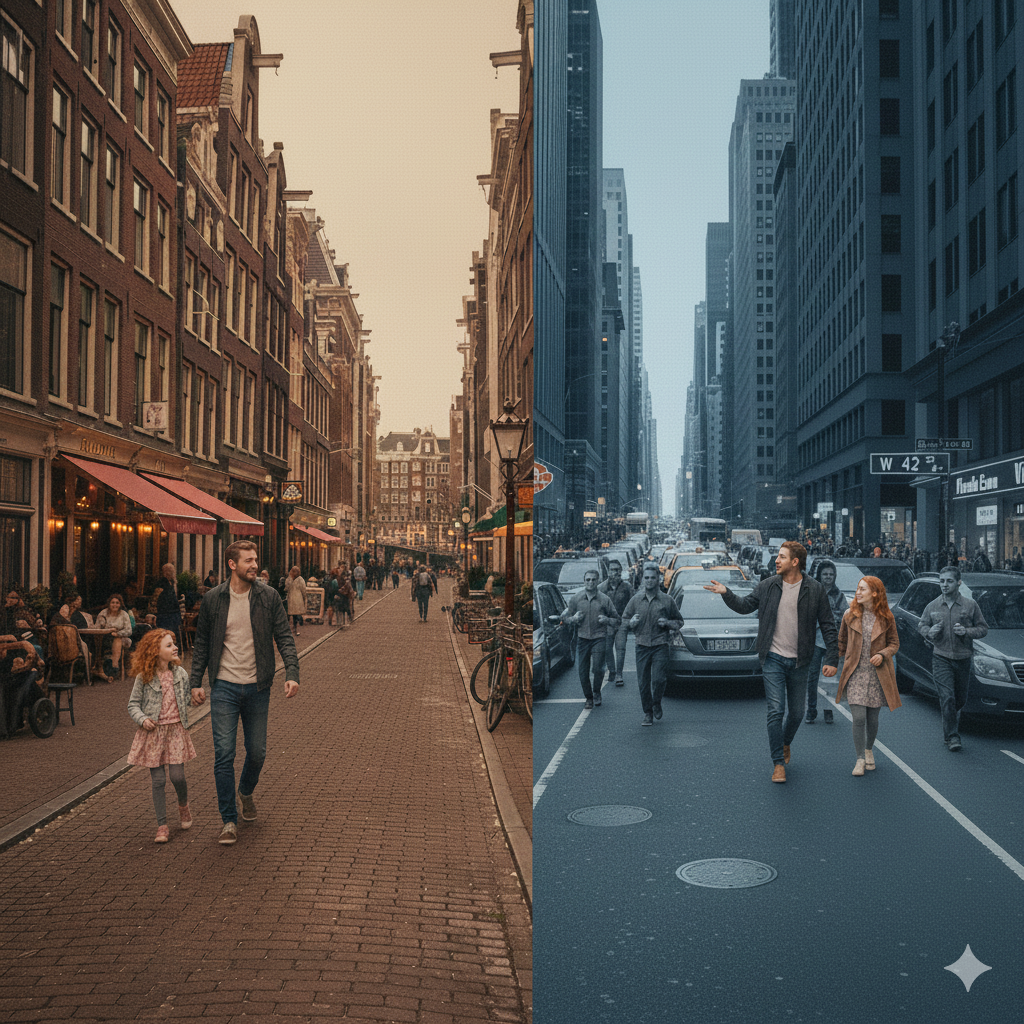 > be me, european dad> walking through NYC with the family> thinking back to Amsterdam last year> in Amsterdam: walk 5 meters, pass two cozy restaurants and a café without even crossing the street> in NYC: still walking past the same endless window of a generic chain restaurant > the block is 200 meters long and looks like an industrial hallway> every road is a perfect gray checkerboard grid, no soul, no landmarks> in Amsterdam you always feel the pull of the city center> in NYC I’m lost in a sea of grocery codes> "It is 42nd and 8th or 57th and 3rd instead of Bear street or Flower market> who names a street after a number? it's like living inside an Excel spreadsheet> realize the city isn't made for people> too boring to walk because there’s nothing to see between the "hubs"> too congested for cars because every intersection is a 20-minute standoff> mfw I realize why they need "Friends", "HIMYM", and Alicia Keys songs> the media has to gaslight the world into thinking this is "the place to be"> in reality, the quality of life is lower than in the Calhoun mouse experiment> everyone is a "Universe 25" mouse, stressed, sterile, and dying out in slow motion > birth rate is cratering because who wants to raise a kid in a concrete grid and carry a stroller up into the 4th floor apartment without any elevator?> look at the people on the sidewalk> no joy, just the thousand-yard stare of someone chasing a dollar they'll never catch> they’re all sprinting to stay in the same place> all around me are familiar faces.mp3> mfw the mice in the experiment had better housing than a Manhattan studio> mfw I realize NY is the jewish end-game concrete cattle farm where nothing is produced and people are harvesting eachother for gains that they lose the next day> take the next bus to New Jersey just to see people that are no dead branches