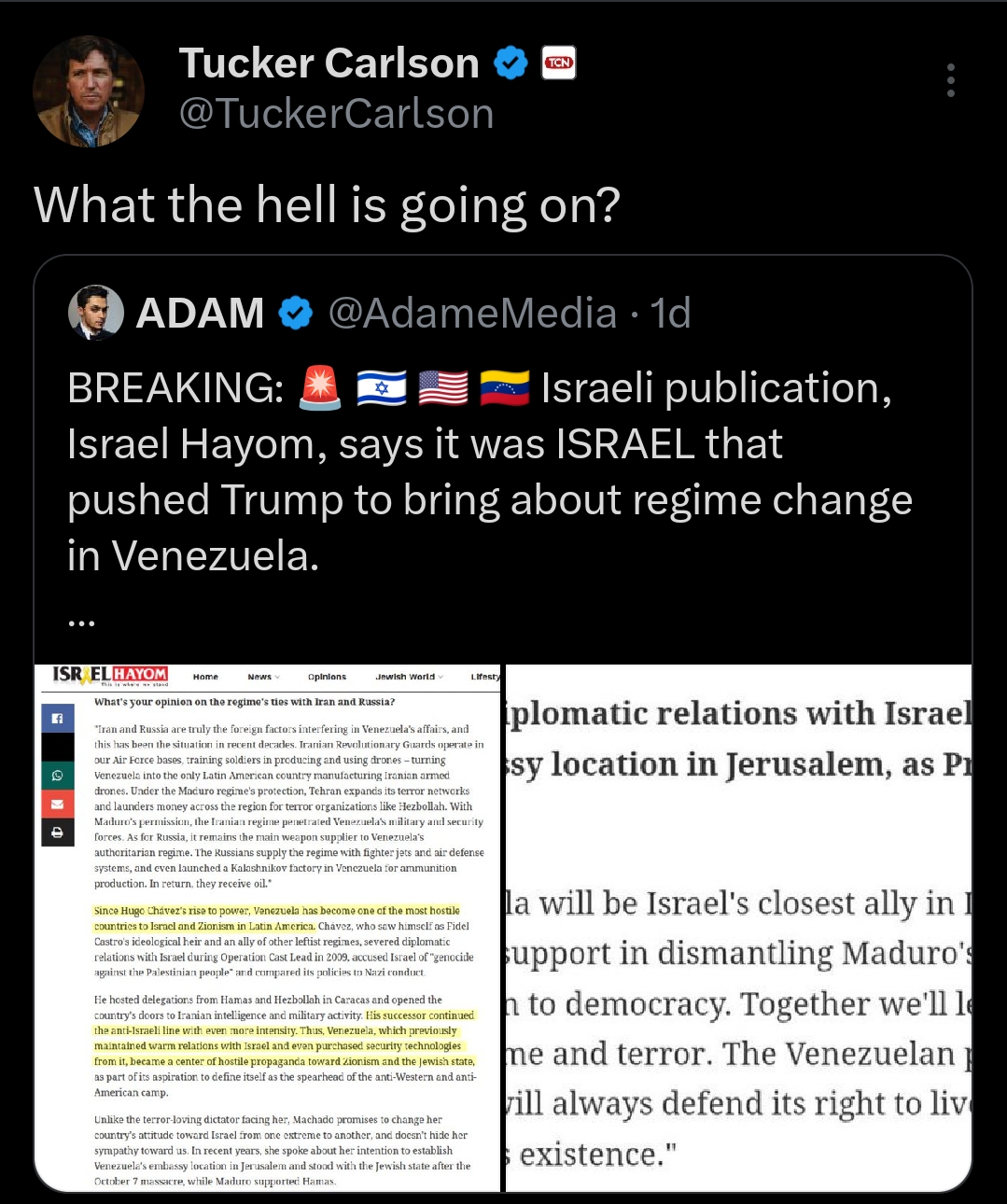 That Israel for cock sucker has blown up some dock claimed to be for "drug boats". More likely it's oil infrastructure