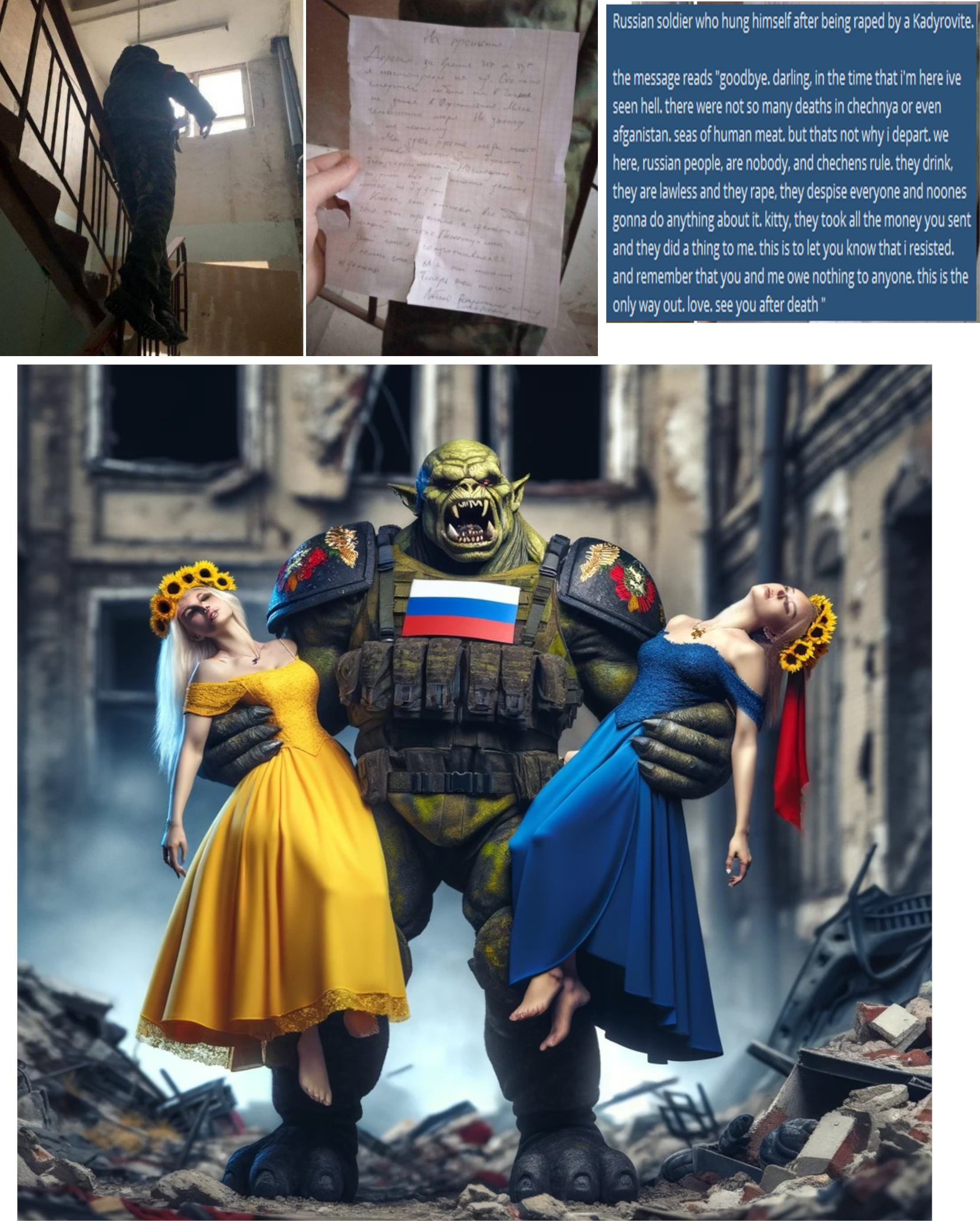 >>524627296>Please understand this is very funny to the rest of the worldYeah, very funny to watch at fake videos where 2 hohols pretending they're russians have gay sex or get beaten by other hohol.Like what the fuck is picrel lmao