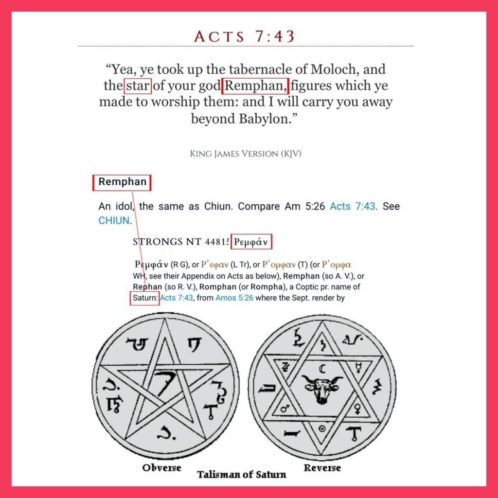 >>524635135I knew about the tabernacle of Remphan being the Jewish Hexagam but I didn’t realise Remphan was actually the name for Saturn. All keeps adding up, except I don’t get what the origin is of why Saturn is so special to the Jews