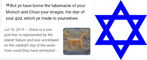 >>524637553I already explained the whole thing in a previous post but i will explain it to you personally. In short words jews began worshipping Saturn. That angered God and he exiled them over it. they choose chiun/moloch/rephan over God and sacrificed babies to him. Then God sent Christ to them as a last chance and they crucified him. Thats when they lost the covenant and was given to gentiles instead. The "Star of david" is nowhere to be seen in the old testament. Its the star of Rephan. Jews doesnt want anyone to knows this but they lost the covenant. Amos 5: 26-2726 But ye have borne the tabernacle of your Moloch and Chiun your images, the star of your god, which ye made to yourselves.27 Therefore will I cause you to go into captivity beyond Damascus, saith the Lord, whose name is The God of hosts.Acts 7:43'43 You took up the tent of Moloch and the star of your god Rephan, the images that you made to worship; and I will send you into exile beyond Babylon.'https://www.biblegateway.com/passage/?search=Amos+5&version=KJV