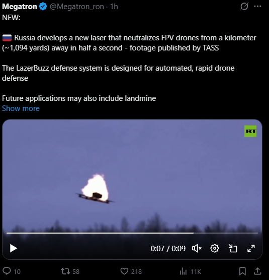 In related news, our coolest friend Russia has developed a laser that will BTFO all Ukro, Nato and Nafo drones, please double your seething and serve it steaming hot!