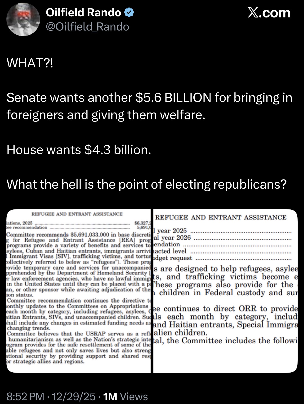 Everyone enjoying the GOP's billions for refugee resettlment?The House and Senate only disagree with the amount.