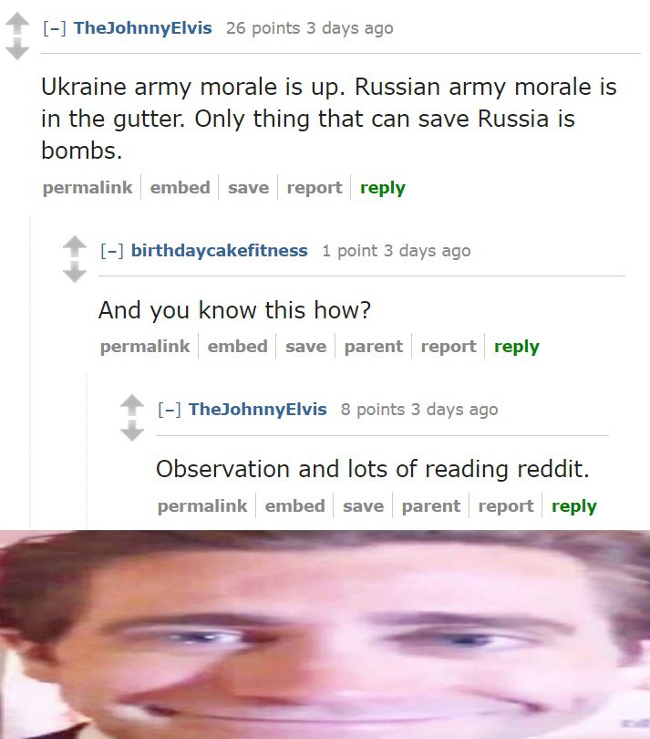 >>524646327Also it's funny that Medvedev says Zelenskyy should "stay in hiding"We all know that Russia has carried out extrajudicial assassination attempts (Alexander Litvinenko, Sergei Skripal, Alexei Navalny), but Russia has always denied being involved in those poisonings. Here we have maybe the closest thing to an admission from Russia.Yet there will still be morons who will take everything the Kremlin says at face value, and those people will maintain that the Kremlin didn't carry out the poisonings it carried out. Clown world.