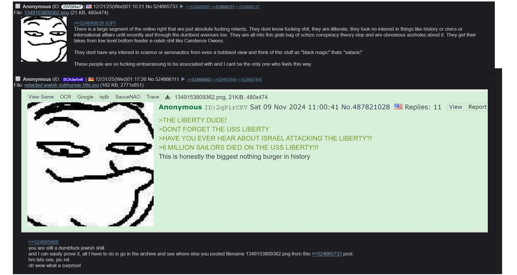 >>524648639There is a large segment of the online right that are just absolute fucking retards. They dont know fucking shit, they are illiterate, they took no interest in things like history or civics or international affairs until recently and through the dumbest avenues too. They are all into this grab bag of schizo conspiracy theory slop and are obnoxious assholes about it. They get their takes from low level bottom feeder e-celeb shit like Candence Owens. They dont have any interest in science or aeronautics from even a hobbiest view and think of this stuff as "black magic" thats "satanic"These people are so fucking embarrassing to be associated with and I cant be the only one who feels this way.