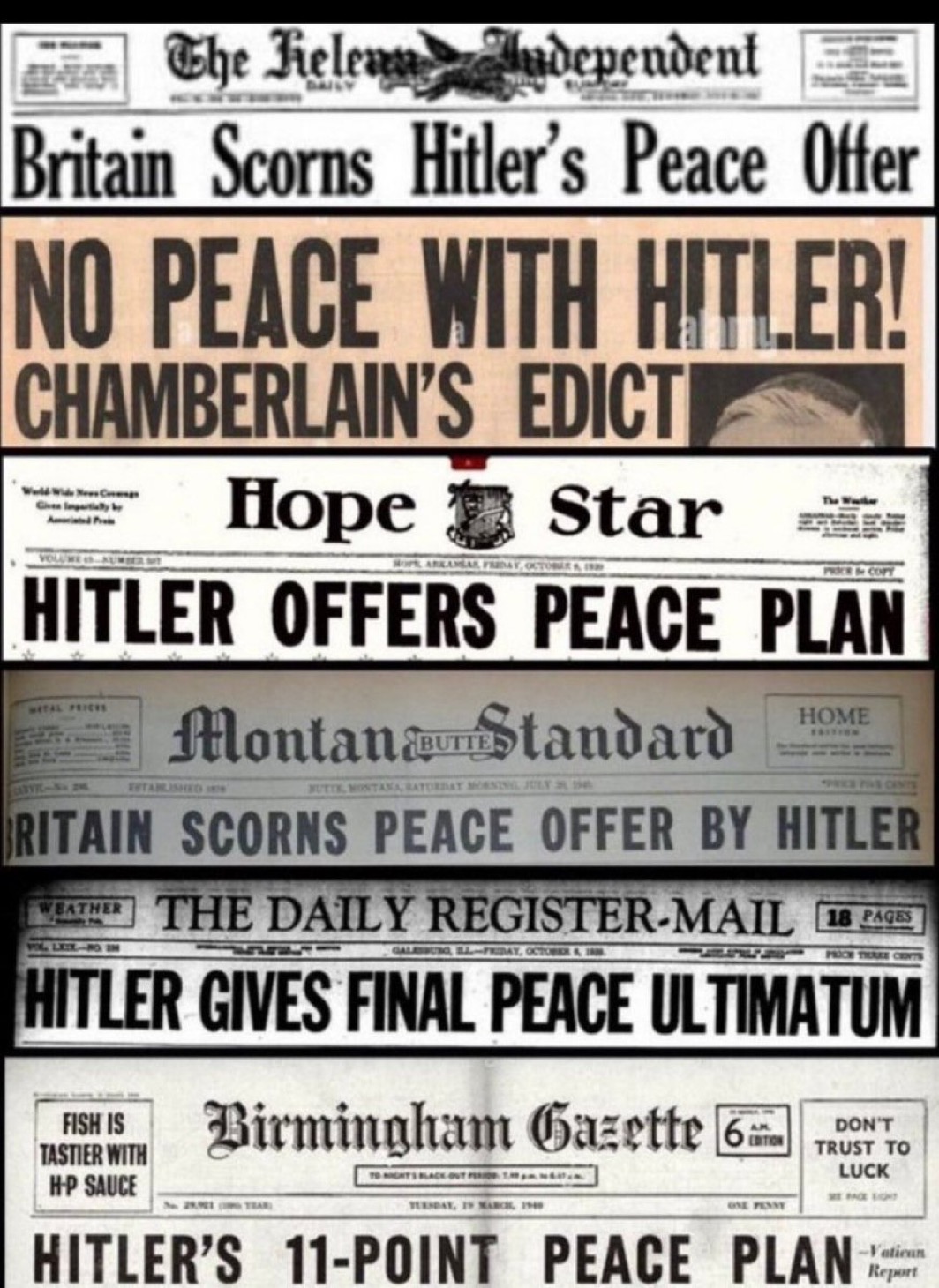 >>524660669I don't think you understand the extent to which the UK had propped up Hitler and goaded him into war if you take these proposals seriouslyThe UK had just got exactly what it had planned for for years. All it had to do now was keep Germany at war, allow it to occupy mainland Western Europe, then give it the illusion of security on its western flank so it could be pitted against the USSRHitler was a puppet. The Germans got played. The puppet masters must have had a good laugh with these 'peace proposals'