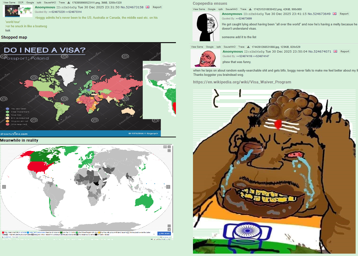 >boggy admits he's never been to the US, Australia or Canada, the middle east etc. on his 'world tour' >or he snuck in like a boatwogkek