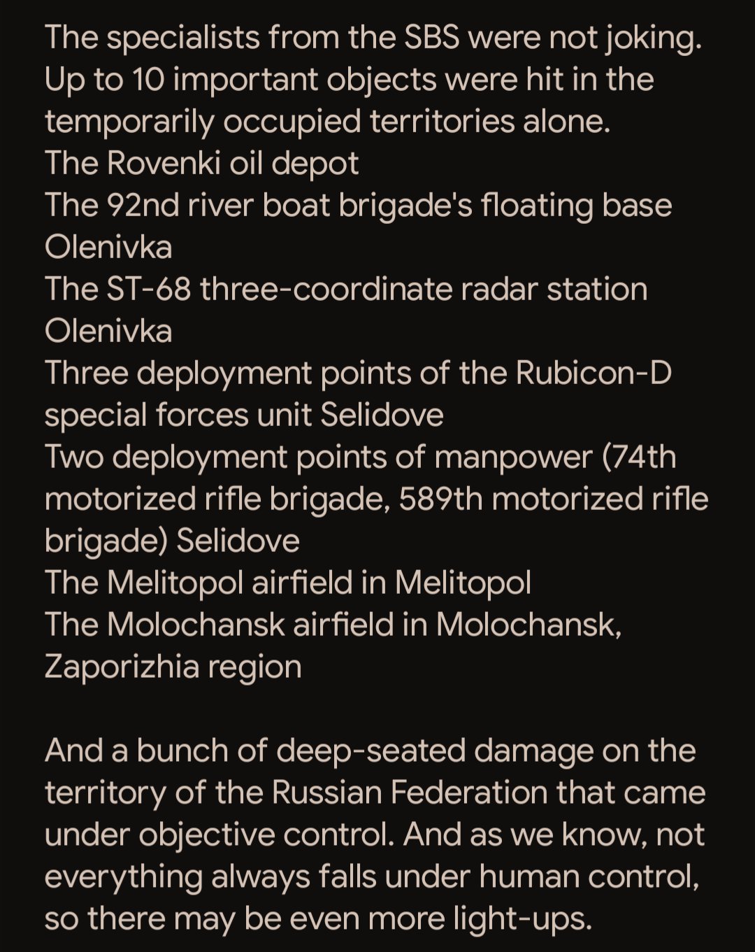 Previous: >>524665810Day 1,407 – Daily assessment: understandingwar.org/analysis/russia-ukraine/#research▶Latest>Tuapse refinery on fire, large outgoing drone attack>Second Logistics Hub in Romania to Be Opened for Ukraine>Syzran refinery struck>The Russian Ministry of Defense released footage of the withdrawal of its troops from Kupyansk as proof of control over the city>The Ukrainian Armylaunched a counterattack north of Pokrovsk and have retaken Suhketske, Suvorove and the Krasnolymanskaya Mine north of Rodynske.>140 refineries and oil depots hit in 2025, +50% yoy>170k named and verified dead rusniggers t. poteru + gorushko>NEW DEAD rUSSIAN GENERAL: Fanil Sarvarov>russians have started using horses for meat assaults due to running out of armour.>Ukraine said it used British Storm Shadow missiles to attack the Novoshakhtinsk oil refinery>russia admits the loss of Kupyansk and nearby villages>putin confirms that russia is ready to import unlimited amounts of indians to make up for all the dead russian soldiers>Zelenskyy revealed for the first time 20 points of the basic document on the end of the war. Among them: Ukraine's sovereignty will be reaffirmed; The number of the AFU will remain at 800k in peacetime; The US, NATO and European signatory states will provide Ukraine with security guarantees (automatic sanctions+military response) that will reflect Article 5; Ukraine confirms that it will remain a nuclear-free state; russia will enshrine a policy of non-aggression towards Europe and Ukraine in all necessary laws and all necessary ratification documents▶Telegramrentry.org/telosint2023t.me/ukr_pics▶Intelt.me/DeepStateENodin.tradoc.army.mil/WEG (equipment explorer)ukr.warspotting.net (visually confirmed losses)▶Mapswww.deepstatemap.live/enliveuamap.com/en▶DISPOSABLE SOLDIER (diary of a RU mobik)TOURS 1-4: files.catbox.moe/mpcw7p.zip▶12 min of TZD in one ditch (Pokrovsk area) - 28 killedfiles.catbox.moe/sxbxfb.mp4 (embed)