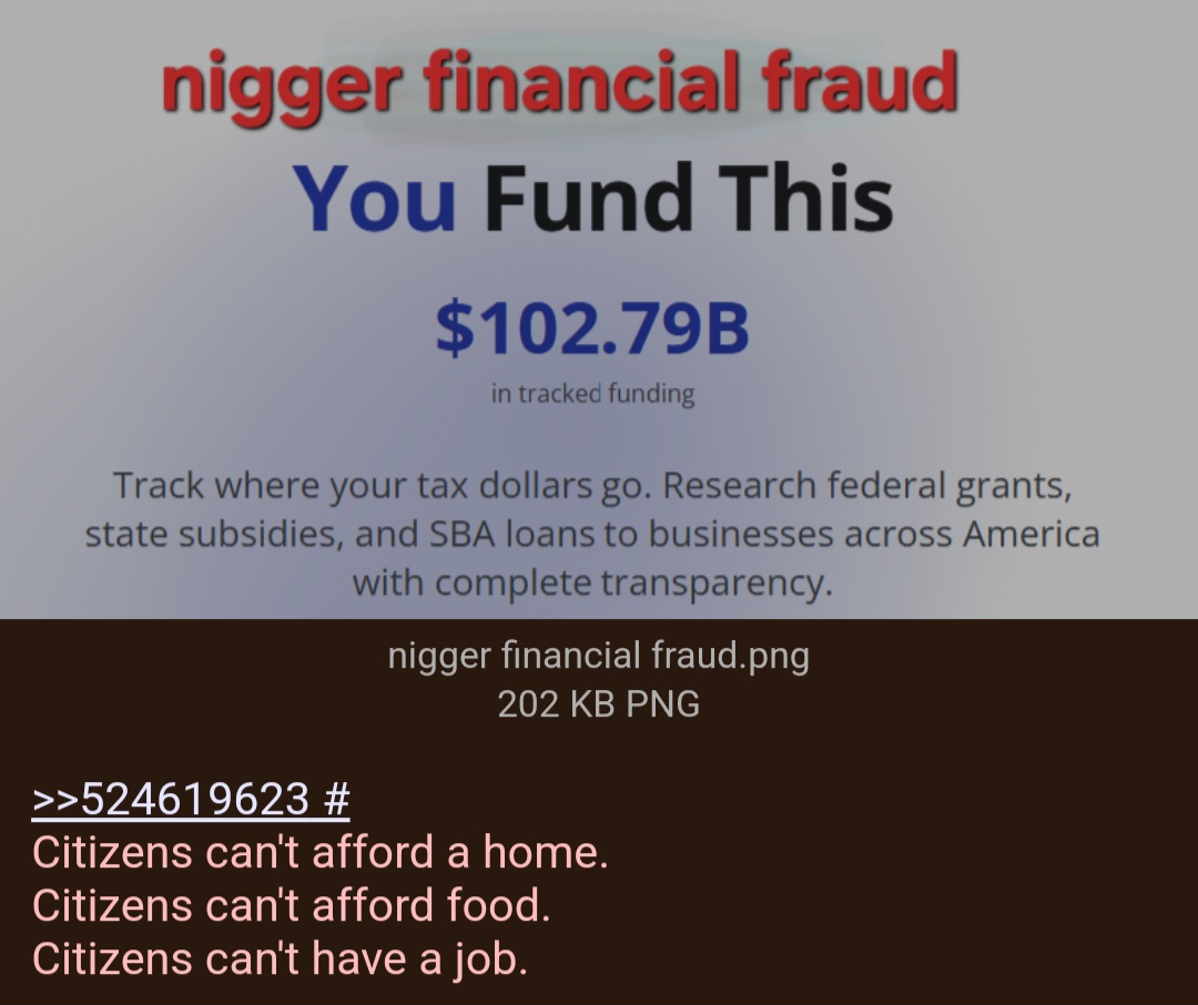 >>524703185>>524703317Just imagine how much money the other coloreds like spics and jeets are stealing from us. Reminder that I am baking, worry not and be just.