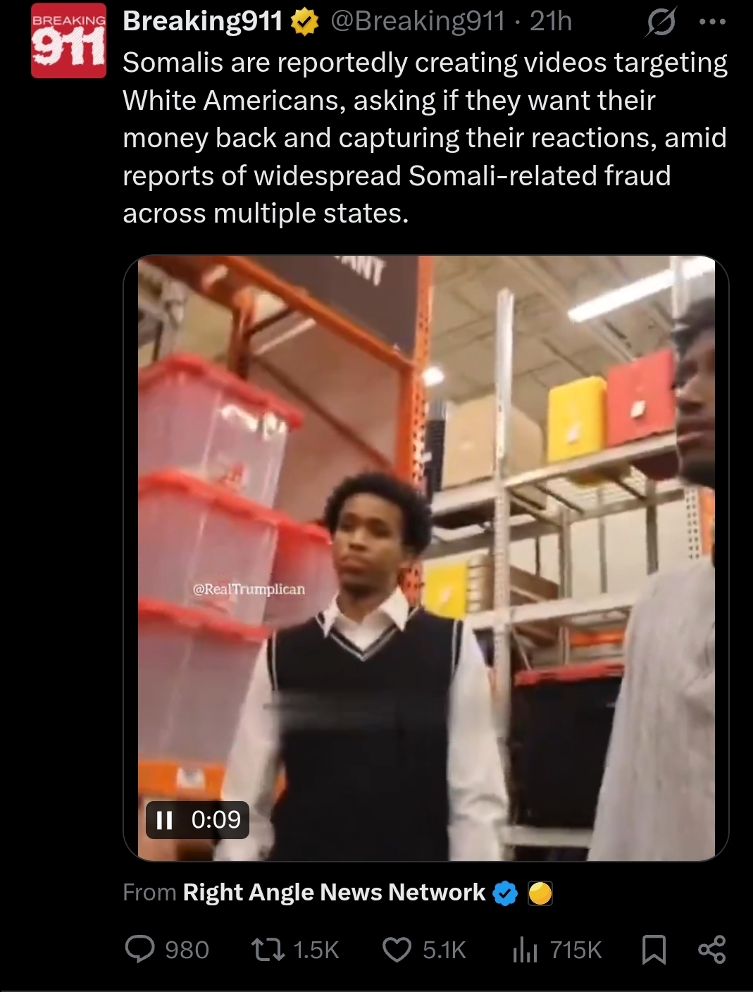 Seeing all these white people harassing these Somali businesses all over the country is hilarious but I'm worried someone is going to get killed.