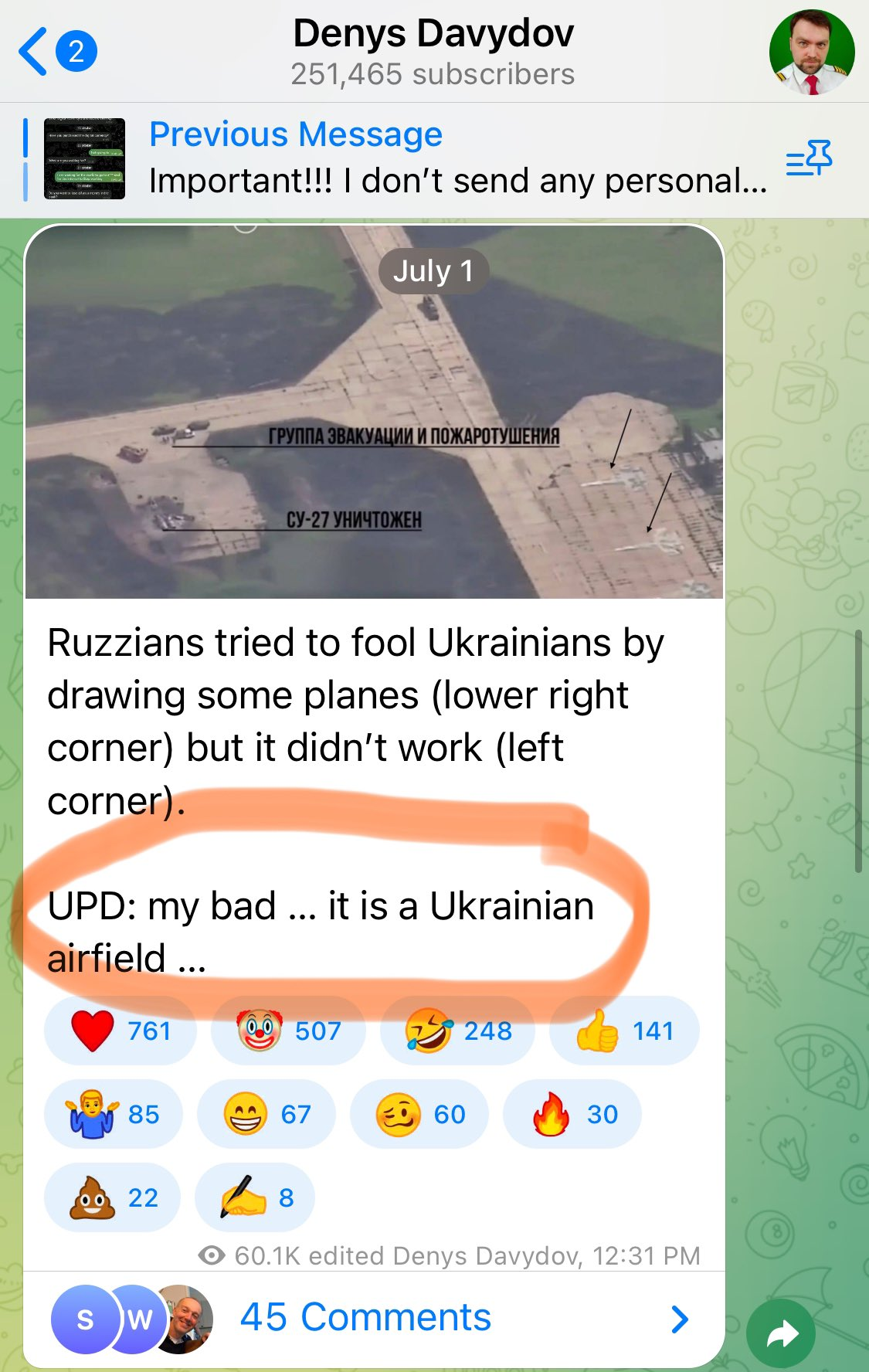 captcha is breaking down here>all these dots out of the box>>524711950>>muh daily briefings from bongjeet and goreleaf on ukr_pics telegram chatI heard someone doxxed goreleaf's IG>>524711980>raped and pushed out by Russians in tunnelsexplain this new damage control?