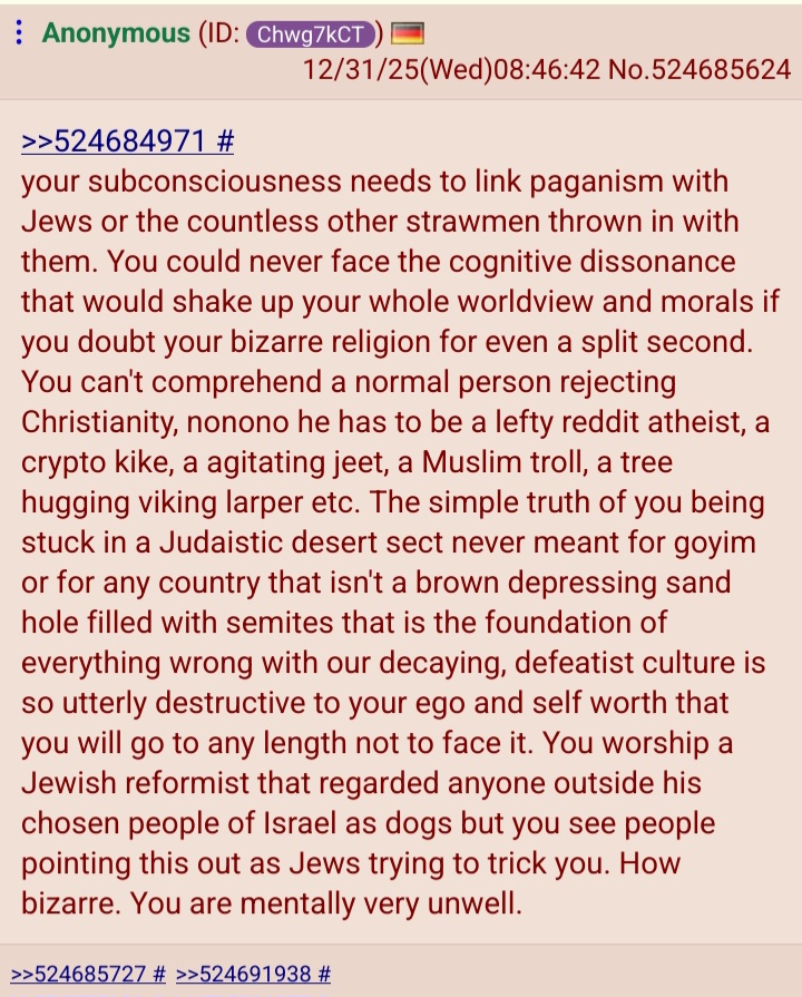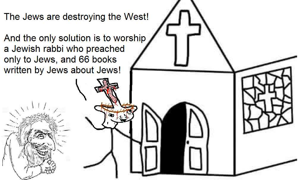 >You seem awfully excited that your semite cult replaced White religions. Way to mask off, kike