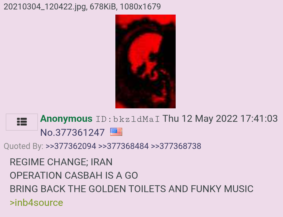 >>524773623> This is literally a happening. Iran has become too weakened after all the losing in the past yearNot really, this thread is an aspect of globohomo trying to build support for attacking Iran again.