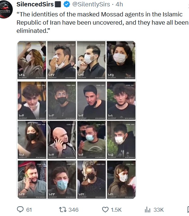 the funny thing of following the shill narration that any dissent in Iran is Mossad is that the Iranian intelligence is so utterly shit that after getting a good chunk of its military leadership murdered by Mossad they couldn't even clear house enough to avoid protests a few months later.