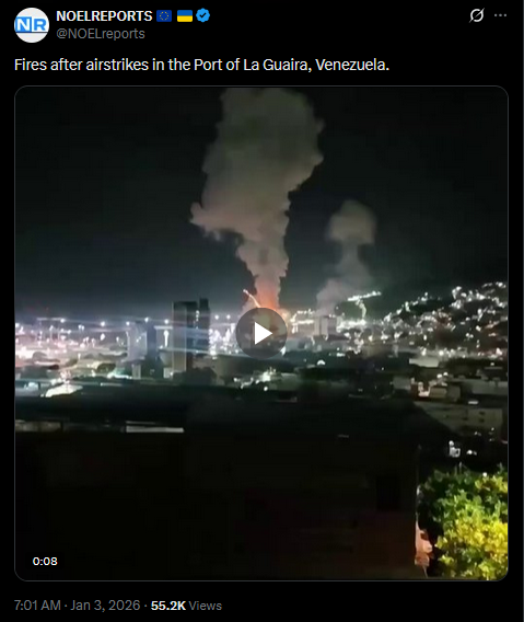 >>525018010Fires after airstrikes in the Port of La Guaira, Venezuela.https://x.com/NOELreports/status/2007346545021333547?s=20https://files.catbox.moe/1hv02m.mp4