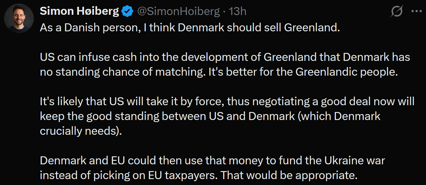 I'm going to laugh so hard when Denmark just sell Greenland to china for a dollar and wipe their hands of it. Imagine the seethe.
