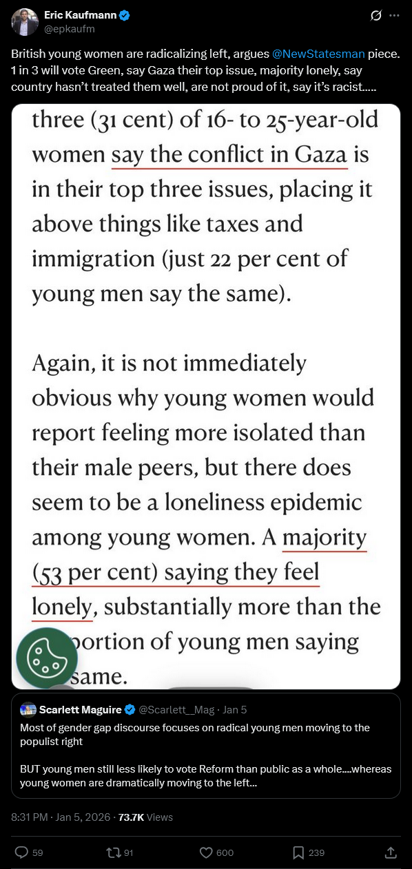 https://xcancel.com/MrNChance/status/2008313101221814631#m>Andrew Gold: "Woke Right is identity politics and victimhood">Also Andrew Gold when some Jews FEEL they are being excluded from the arts for their views on Gaza: "We (Jews) are in trouble. We are about to face a global holocaust">Andrew interviewed his good friend Josh Howie from GB News on his own podcast. Josh had his identity on display the full time and claimed he supports Spurs because of its Jewishness and would support Israel in Eurovision. Josh also talks about Jewish victimhood a lot.woke juadism