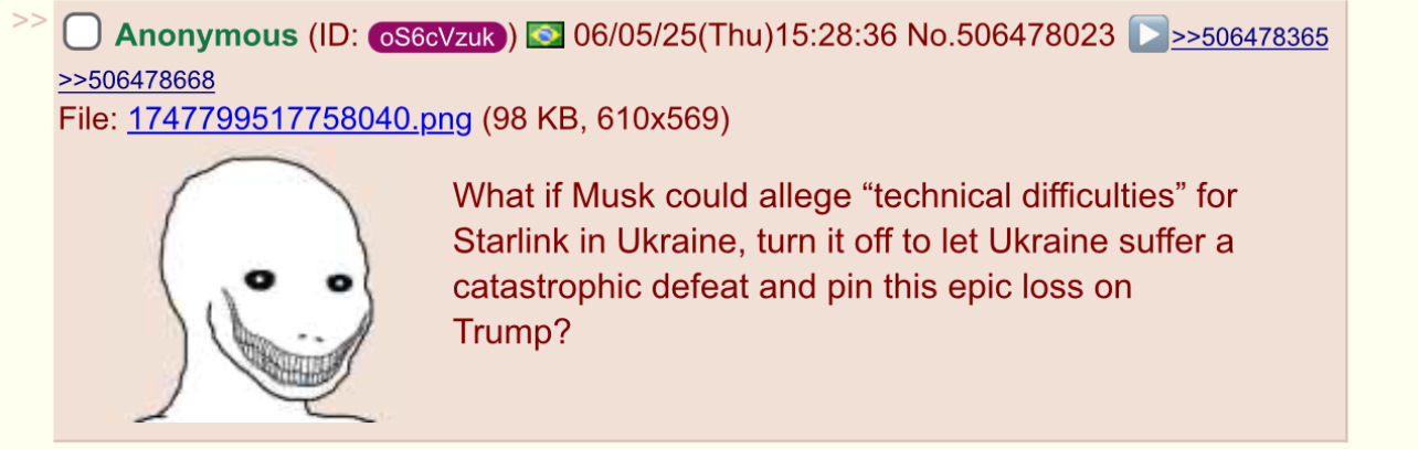 >>525302061There's a ton of online losers that base their entire identity on how Russia performs in the war and how that country is percieved so things like this really cut deep for them.It's especially funny when the loser in question isn't even Russian and managed to indentify himself with that shithole of a country lol.Loser nation for losers.