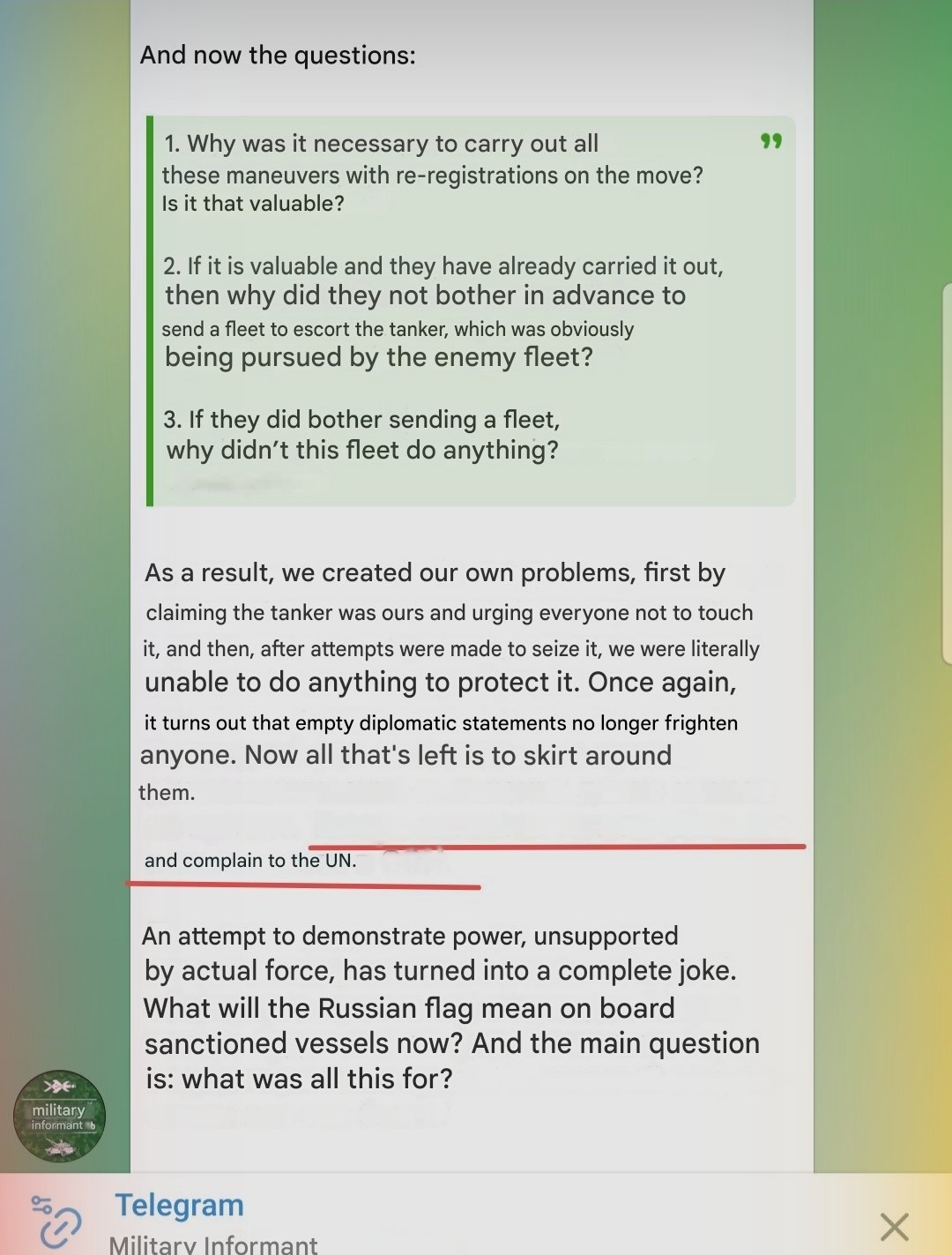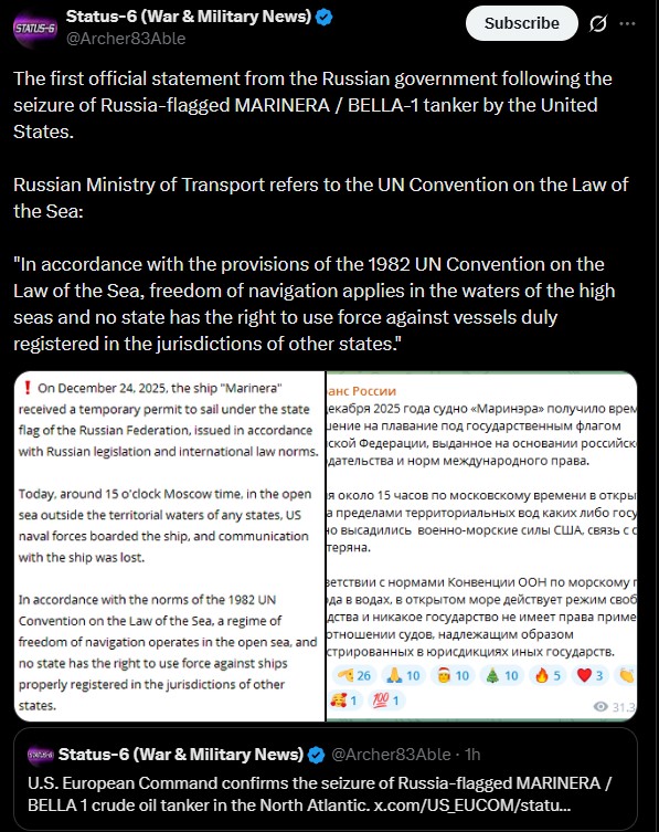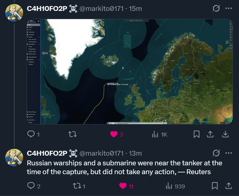 >As American forces seized the sanctioned Russian-flagged tanker Marinera, formerly Bella 1, Putin’s bravado vanished. He has remained silent since his friend and ally Maduro was dragged out of his bedroom like a naughty toddler and deposited in a New York courtroomBunkermonke roping when???