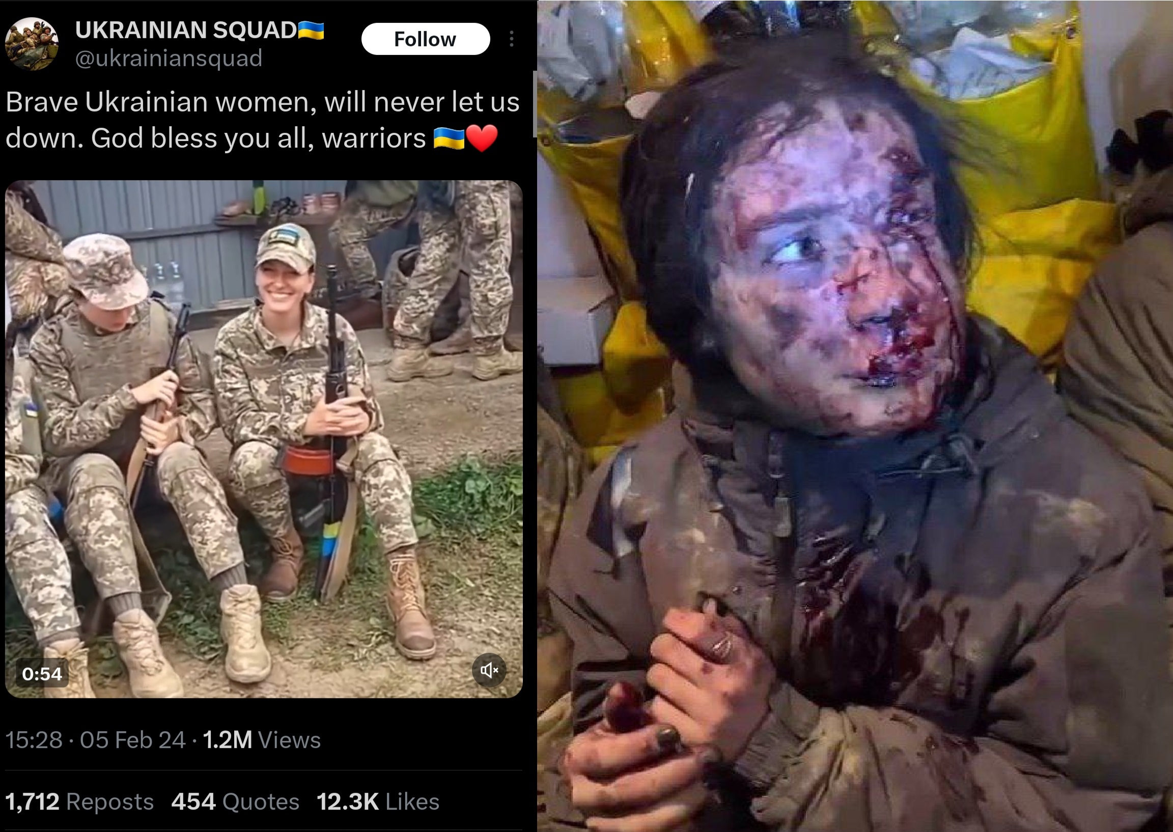 >>525385987She's extremely lucky she got captured and photographed. Otherwise, she could expect pack rape and getting shot in a ditch. Shit one Ukraine soldier was molesting corpses. Another was eating the dead but he got killed.