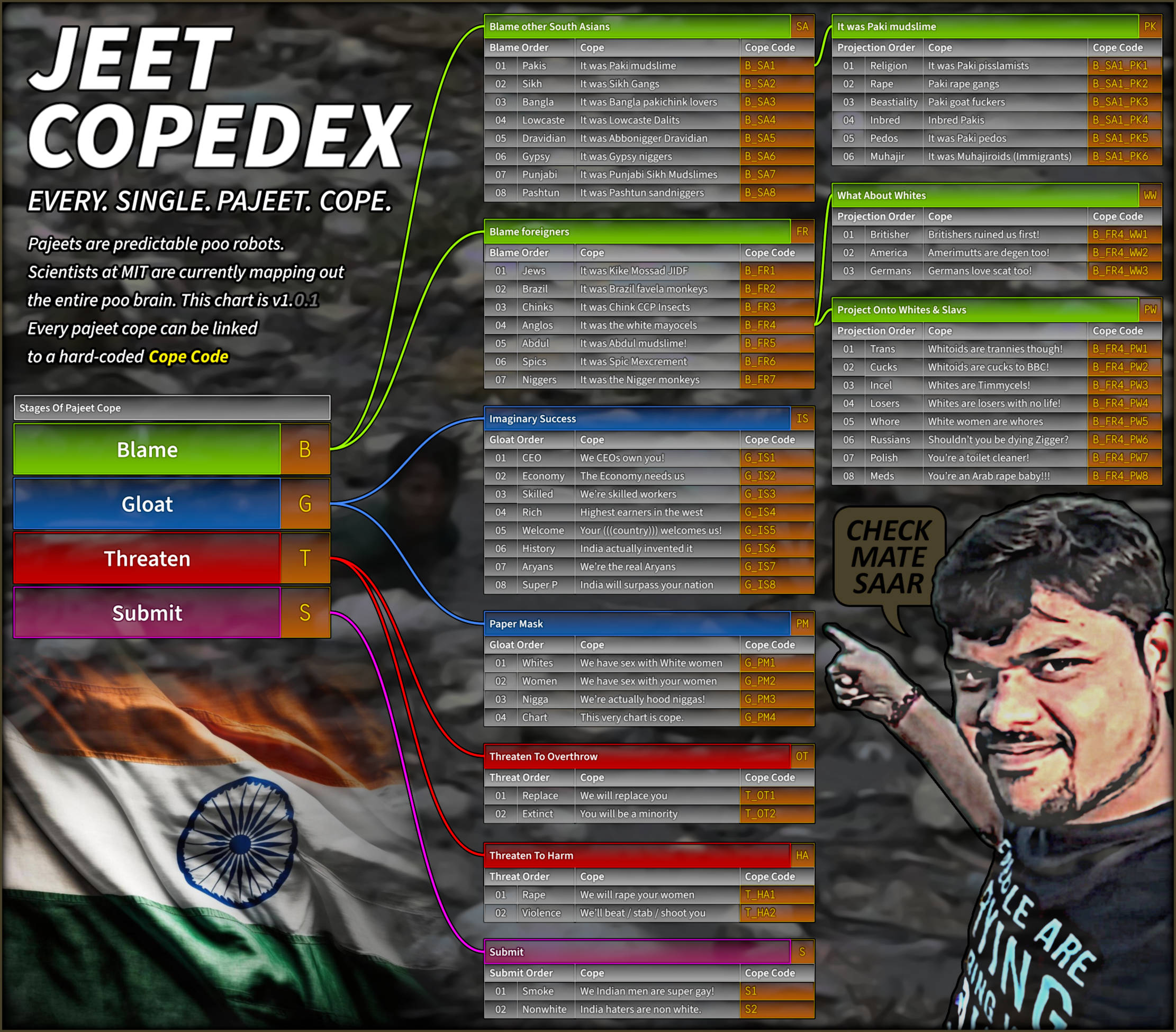 EVERY PAJEET SAYS≈≈≈>$45T stolen by britain ≈ abrahamic/desert/yahweh ≈ according to [AI chat product] ≈ actually jews are cool ≈ age of consent ≈ AI singularity/waifu ≈ aryan ≈ booba/sexo/would ≈ built for bbc ≈ can't breed ≈ capitalism ≈ ceo doctor technology ≈ chang seething ≈ cherry picking ≈ chess/spelling ≈ christcucks ≈ cletus ≈ consent is a western concept ≈ daily reminder ≈ eglin afb is behind it ≈ elon/vance/vivek ≈ epstein files more important ≈ eugenics ≈ faustian spirit ≈ feminism/simping ≈ fentanyl ≈ full sapport for israel ≈ good morning ≈ haplogroup ≈ household income ≈ human capital ≈ i can pass for xyz ≈ [incel noises] ≈ indo-[whatever] ≈ [iq insecurity] ≈ jesus was jewish ≈ jidf is behind it ≈ left/right/voting matters ≈ meritocracy ≈ mom/sister on onlyfans ≈ कुछ भी महत्वपूर्ण नहीं है ≈ npnw ≈ obsessed/rent-free ≈ october 7 ≈ [other ethnicity] is guilty of [pajeet thing] ≈ outcompete ≈ paganism is your real heritage ≈ [penis concern] ≈ rape ≈ [redditor noises] ≈ [report snitch squeal] ≈ reverse colonization/conquest ≈ saar ≈ send bobs/vagene ≈ slave morality ≈ slop ≈ state mandated [entitlement] ≈ stem skill issue ≈ stolen land ≈ stop [cars/dogs/guns/meat/etc] ≈ thanks for the rupees jidf ≈ that's a paki ≈ timmy/timmies ≈ trvth nvke ≈ voted for it ≈ where should i move ≈ whiter than you ≈ why are white women like white people like this ≈ wiggers ≈ you need us ≈ you will be extinct ≈ you won't do shit ≈ you worship xyz ≈ zindabad ≈ zutt
