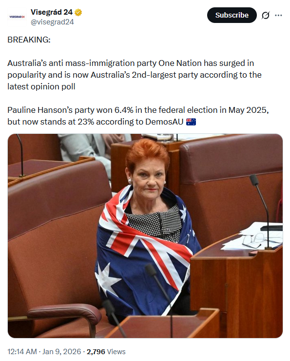 >>525494407>breaking news: Australia's One Nation party has just been made illegal, voting to be suspended to save democracy