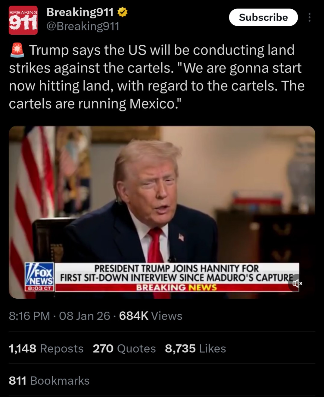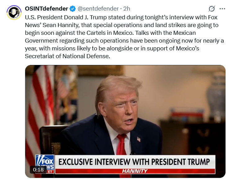 >wow there's more going on right now than a decade of prior geopolitics, hope we're done for now->"I'm going to start bombing Mexico "
