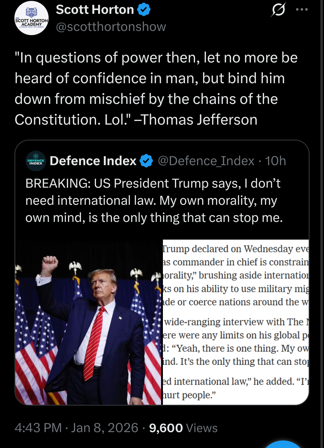 Why doesn’t Trump do anything Thomas Jefferson would actually do? He’s a disgrace to the country. That’s how I know he’s a fucking fraud.