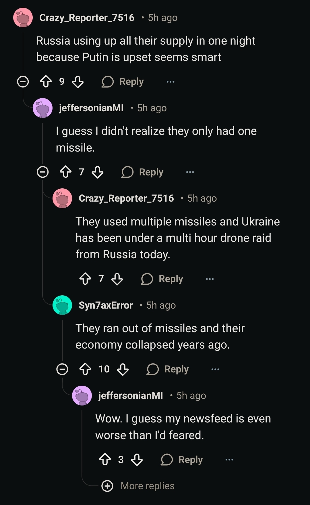 >>525506039Oreshnik is pure happiness, despite all the copers saying a Patriot, THAAD or USN aegis can stop it if they really want. >>525506005Replied to all but mine, now I'm upset. hahaSleep well all of you.